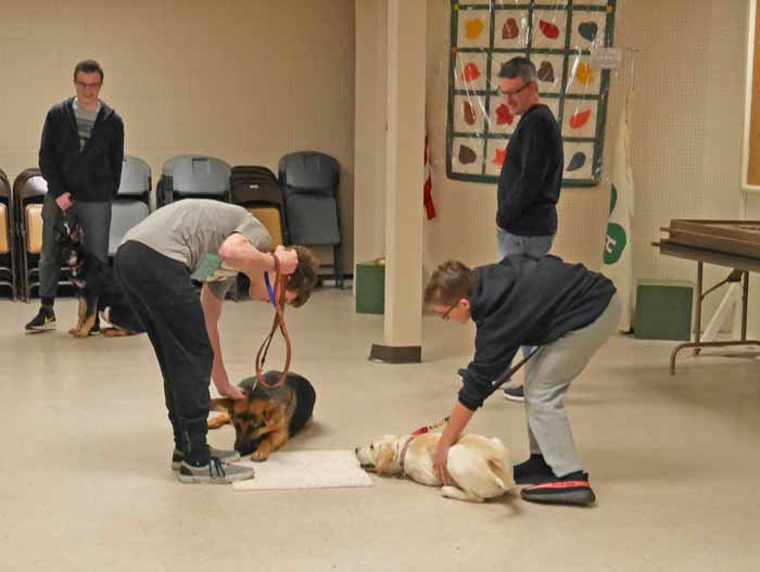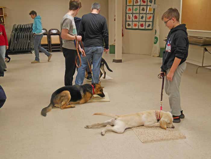 Neither pup would sit on the last carpet and it was called a draw!